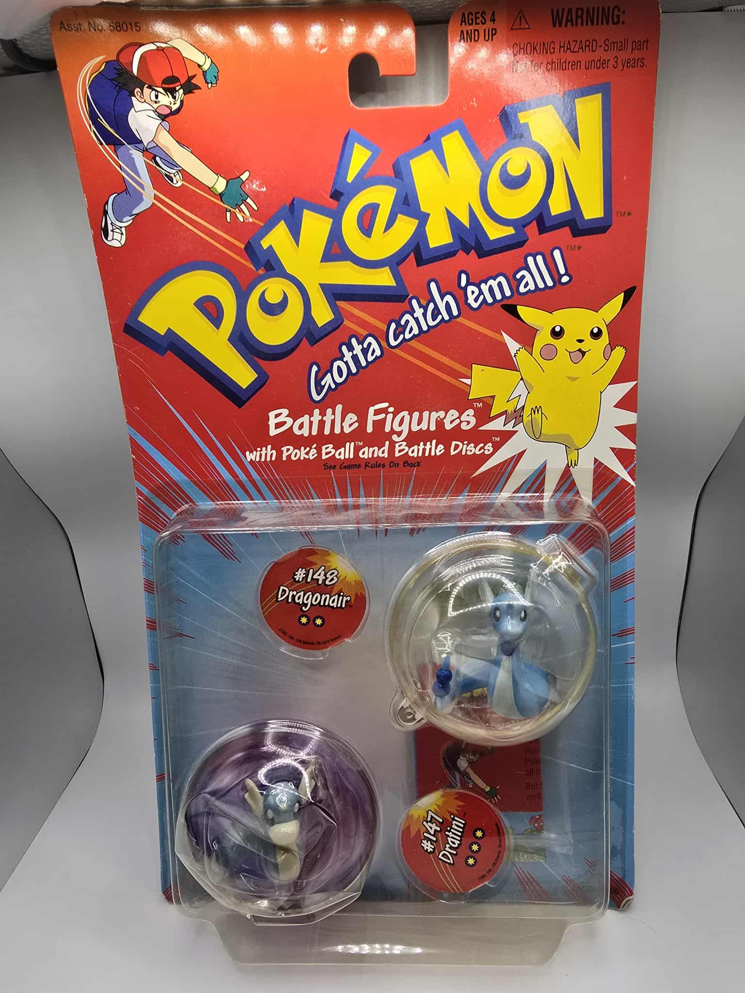 Harness the power of the Dragon-type with this vintage Pokémon Battle Figures two-pack featuring Dratini and Dragonair. Originally part of the iconic Pokémon Battle Figures line, this set comes with its classic Poké Balls and Battle Discs, making it a standout collectible for fans of the original series.